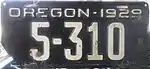 Embossed white serial on black plate; "OREGON-1929" at top | 123-456 | 1 to approximately 330-000 | Validated from January 1 through June 30, 1930, with windshield sticker. |