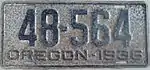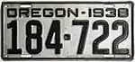 1936 | Embossed black serial on silver plate with border line; "OREGON-1936" at bottom | 123-456 | 1 to approximately 276-000 | |