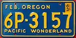 Embossed orange serial on black plate; "OREGON EXPIRES JUNE 30 1931" at bottom | 123-456 | 1 to approximately 296-000 | |