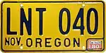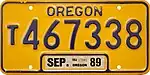 - ↑ Goetze, Janet (October 11, 1989). "Oregon plates are getting brighter: '89 Legislature agreed to alter color scheme". The Oregonian, p. B6.