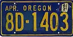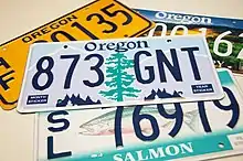 - ↑ "Old Oregon License Plates". LeatherLicensePlates.com. Retrieved August 17, 2017.