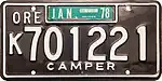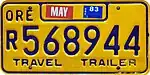 c. 1973–83 | Blue on gold; "ORE" and sticker box at top and "TRAVEL TRAILER" at bottom | R499501 to approximately R575000 | |||