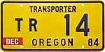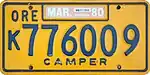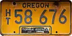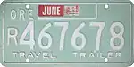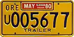 Utility Trailer | c. 1979–83 | Blue on gold; "ORE" and sticker box at top and "TRAILER" at bottom | U123456 | U000001 to approximately U041000 | Issued to trailers having a loaded weight of 8,000 lb or less. |