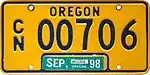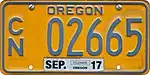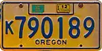 mid. 2000s–present | Blue on gold; "OREGON" at top with sticker box at bottom | C/N 03200 to C/N 04617 (as of August 23, 2021) | |||