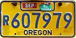 c. 1983–2004 | Blue on gold; sticker box at top and "OREGON" at bottom | R575001 to approximately R750000 | |||
