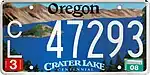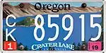 Crater Lake Centennial | 2002–2022 | White on multicolored background. Surface-printed serials. Discontinued September 9, 2022. | C/L 12345 | C/L 00001 to C/L 99999 | Awarded "Plate of the Year" for best new license plate of 2002 by the Automobile License Plate Collectors Association, the second time Oregon was so honored. Surcharge supports Crater Lake National Park. |