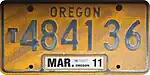 The U.S. state of Oregon first required its residents to register their motor vehicles in 1905. Registrants provided their own license plates for display until 1911, when the state began to issue plates.[1]