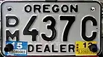 late 2000s-present | Blue on gold or black on silver with "OREGON" at top and "DEALER" at bottom | D/A 1234 A D/A 1234AB D/L 1234 A D/L 1234AB | |||