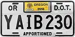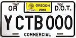 White on red or black on white with "COMMERCIAL" at bottom and "DOT" or "PUC" at upper right corner | YCBC123 | YCAA001 to present | Issued to trucks that only operate within Oregon and have a GVW of more than 26,000 pounds. | ||