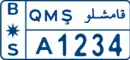 Motorcycle license plates have a reduced size. They still show the jurisdiction in both Arabic and Kurdish (but not Syriac). They do not show the national identifier "SYR", but do show "B*S" (Northern Syria) regional identifier. They consist of a latin letter and 4 digits.