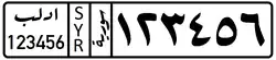 The plates consist of 6 digits. In contrast with the format used by the Damascus government, Latin numbers take precedence and are on the top, while Arabic numbers are at the bottom.