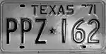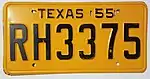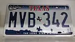 - 1 2 Tanner, Eric N. "Texas Passenger License Plates". allaboutlicenseplates.com. Retrieved November 10, 2020.