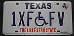 Disabled | 1986 | Embossed dark blue on reflective white; "TEXAS" in red centered at top | none | 1AB |