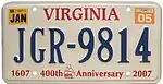 - 1 2 3 Tanner, Eric N. "Virginia Passenger License Plates". allaboutlicenseplates.com. Retrieved November 10, 2020.