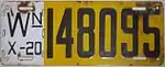 1919–20 | Black serial on yellow and white porcelain plate; "WN X-20" on white section at left | none | 123456 | 144001 to approximately 157000, with gaps | Both these plates issued only to new registrants. |