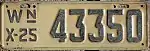 1925 | Embossed dark blue serial on white plate; "WN X-25" at left | none | 123456 | 1 to approximately 282000 | |