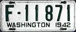 1942–44 | Embossed green serial on white plate; "WASHINGTON 1942" at bottom | none | A-123-456 AB-1234 |