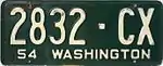 1954–57 | Embossed white serial on green plate; "54 WASHINGTON" at bottom | none | 123-456 A 12-345 AB |