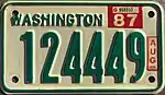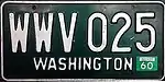 - 1 2 3 4 5 Tanner, Eric N. "Washington Passenger License Plates". allaboutlicenseplates.com. Retrieved November 11, 2020.