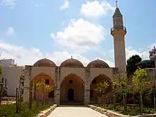 Its tall and wholly surviving minaret is dated a little later than the mosque itself; according to an inscription found on it, it was constructed in 1789,[1] making it Rethymno's oldest surviving minaret.[2][4][3] The inscription also bears the words "God bless it! Glory and gratitude to the Lord... We made a donation and renovated the minaret so that the adhan can be heard and for God's mercy".[5][4]