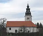 The local church is dedicated to the Holy Cross and belongs to the Parish of Prežganje. It was originally a medieval chapel that was extended in 1869 when a nave was added.[4] The interior furnishings, including the altar, the Stations of the Cross, and the organ, date from the 1869 renovation.[5] The church was established by monks from Stična because the village once belonged to the jurisdiction of the Stična monastery.[6]
