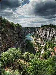 Velká Amerika is 800 m (2,600 ft) long, 200 m (660 ft) wide and up to 100 m (330 ft) deep quarry with an 18 m (59 ft) deep pair of lakes on the bottom. It is nicknamed "Czech Grand Canyon".[1]
