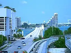 Venetian Causeway from Downtown Miami, east toward Miami Beach in 2002