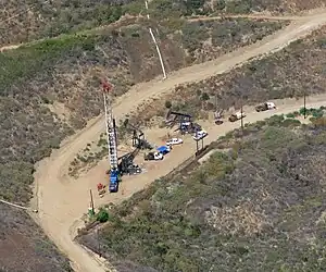 The area was worked initially in 1885, followed by Ventura County Power Company drilling 7 shallow gas wells in 1903. While they reached depths of between 400 and 800 feet (240 m), it is not known if they produced oil.[13] In May 1916 the first commercially viable well, No. "Lloyd" 1, was drilled by State Consolidated Oil Company to a depth of 2,555 feet.[14][15] Initial production consisted of 100 barrels a day.[16] Shell Oil drilled the first well into what is now known as the 2nd Pool, in the Pico Formation, in March 1919, reaching a depth of 3,498 feet (1,066 m).[13]