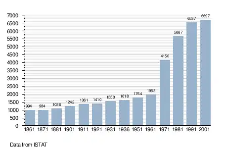 - ↑ "Popolazione Residente al 1° Gennaio 2018". Italian National Institute of Statistics. Retrieved 16 March 2019.