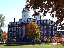 College Hall, the central building on campus, is listed on the National Register of Historic Places. It was completed in 1872 and includes a two-story high chapel and a pipe organ from 1884.[3]
