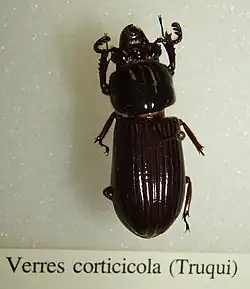 Verres corticicola is a beetle of the Family Passalidae.