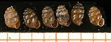 | Six shells of Vertigo geyeri, scale bar in mm | |