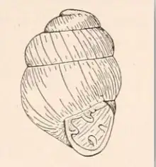 (Original description) The umbilicate shell is rather short. It is oval; very small, fragile and corneous. The shell contains 3½ convex whorls 3. The first one is smooth, the penultimate irregularly striate. The body whorl shows a few growth striae. The aperture is semiovate and is provided with five teeth. The parietal lamella are very high and long. The angular lamella is much lower and shorter than the parietal, the columellar very strong and directed downward. The two palatals are high and short. There is no crest behind the outer lip. [2]