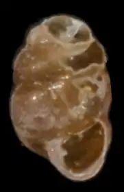 The shell is ventricose, ovate, strongly glossy, very finely striate, chestnut horn-color. The shell has 5 whorls, rather rapidly increasing, convex, the last but little higher than the penult, double as high as the next earlier whorl, a little ascending in front. Suture is slightly oblique.[3]
