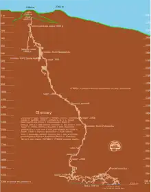 Veryovkina Cave (also spelled Verëvkina Cave, Abkhaz: Вериовкин иҳаԥы, Georgian: ვერიოვკინის მღვიმე, romanized: veriovk'inis mghvime) is a cave in Abkhazia, internationally recognized as part of Georgia. At 2,223 meters (7,257 ft) deep, it is the deepest-known cave on Earth.[1][2] Veryovkina is in the Arabika Massif, in the Gagra mountain range of the Western Caucasus, on the pass between the Krepost[3] and Zont[4] mountains, close to the slopes of Mount Krepost. Its entrance is 2,285 metres (7,497 ft) above sea level.[5] The entrance of the cave has a cross section of 3 m × 4 m (9.8 ft × 13.1 ft), and the depth of the entrance shaft is 32 metres (105 ft).[6]