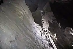 ![]() 155 m [508 ft] deep Babatunda pit at −400 m [1312 ft], the largest shaft in the cave | |