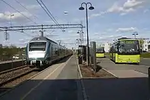 Vestby Station (Norwegian: Vestby stasjon) is a railway station on the Østfold Line located in the village of Vestby, Norway. It is served by commuter trains operated by Vy running from Oslo to Moss. The station opened in 1879, and was modernised in the early 1990s. It features a passenger walkway built in gluelam connecting its two platforms and a small parking lot with place for approximately 120 cars. In 1950 the station served about 160 passengers to Oslo each day.[3] Today the number are 2-3000.