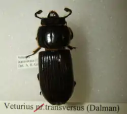 Veturius transversus is a beetle of the Family Passalidae.
