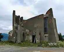 After collaborating on several cemetery projects with the municipal workshop, Djorbenadze received his first independent commission for a cemetery in Mukhatgverdi, a ridge on the outskirts of Tbilisi overlooking the ancient capital of Mtskheta. The commission was part of both a practical mandate to relieve overcrowding in Tbilisi's central cemeteries, and a Soviet ideological mandate to promote secular funeral rites among a residually Georgian Orthodox population.[4] His designs for the ensemble (including an office, memorial space, water tower, and monument workshop) drew on Le Corbusier's Notre Dame du Haut at Ronchamp, earning him the nickname "Jorbusier" in the local architecture community.[5] The cemetery was completed in 1974.