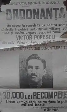 Victor Popescu (1886–1970) was an officer in the Romanian army and a guerrilla warrior during the World War I occupation of Romania.[1][2][3][4]
