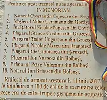 - ↑ "Eroul învăţător Victor Popescu: a condus o bandă de partizani şi a provocat mari pierderi nemţilor în Primul Război Mondial" (web). Adevarul. Retrieved 8 October 2017.