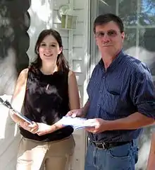Napolitano campaigning with her running mate, Phil Garwood, in 2012