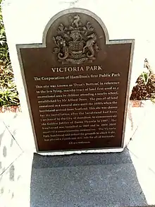 After the bandstand restoration, the Corporation of Hamilton erected a plaque in the park, with the following inscription:
