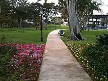 Victoria Park is centrally located in the city of Hamilton, Bermuda (Hamilton is also the capital of Bermuda). It is a public park that is opened daily to the public during daylight hours. It is widely used as an entertainment venue for free concerts and the like. There is also a rather attractive bandstand in the middle of the park, installed in 1889 in commemoration of the Golden Jubilee of Queen Victoria, and renewed in 2008. The park also contains attractive flower gardens and several species of endemic plants and trees. The park takes up a full block, with a number of benches and public restrooms. The park is bordered by Victoria Street, Washington Street, Dundonald Street and Cedar Avenue. It is under the administration of the Corporation of Hamilton.