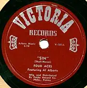 Victoria Records was started in 1951 by Al Alberts of The Four Aces in Philadelphia, Pennsylvania to release their recording of "(It's No) Sin." This record charted nationally at No. 4 in September 1951.[1]