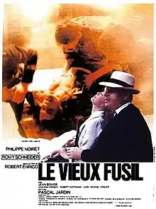 Le vieux fusil (English title: The Old Gun or Vengeance One by One) is a 1975 French-West German war drama film directed by Robert Enrico, and starring Philippe Noiret, Romy Schneider and Jean Bouise. It won the 1976 César Award for Best Film, Best Actor and Best Music, and was nominated for best director, supporting actor, writing, cinematography, editing and sound. The film is based on the Massacre of Oradour-sur-Glane in 1944.