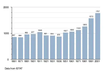 - ↑ "Popolazione Residente al 1° Gennaio 2018". Italian National Institute of Statistics. Retrieved 16 March 2019.