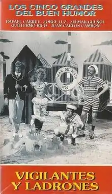 Vigilantes y ladrones ("vigilantes and robbers") is a 1952 Argentine comedy film directed by Carlos Rinaldi and featuring the Los Cinco Grandes del Buen Humor (Five Greats of Good Humor) group of comic actors.[2] It stars Rafael Carret, Jorge Luz, Zelmar Gueñol, Guillermo Rico and Juan Carlos Cambón.[3] Ángel Eleta was the choreographer for the film.[1]