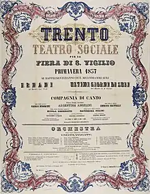 Theatre playbill for the S. Vigilio Fair in 1857, preserved in the Municipal Library of Trento