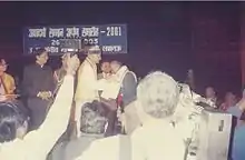 ![]() Vijay Bose accepting Academy samman −2001 from the then Governor of UP Acharya Vishnu Kant Shastri jie | |